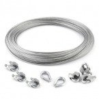 ZESTAW: lina ocynkowana 3mm 6x7 - 100m, zacisk kabłąkowy - 4 szt., kausza - 2 szt.