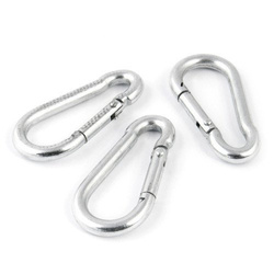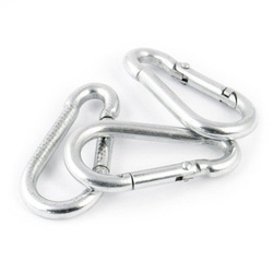 Podłużne lub owalne metalowe klipsy z uchylną sprężyną do zamykania blokady, ułatwiające ich łączenie z innymi elementami. Wykorzystywane jako element łączny do lin włókiennych, stalowych i łańcuchów. Stosowana głównie w przemyśle budowniczym, żeglarstwie i sportach wspinaczkowych. Inne nazwy: karabińczyk strażacki, karabińczyk z zaczepem.